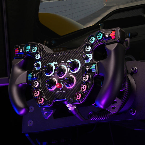 All new GSI wheels run on simOS, our custom firmware optimized specifically for sim racing. It includes features like predictive algorithms to optimize input responsiveness, an intelligent power management interface, and a suite of useful features that integrate directly with the simOS app.