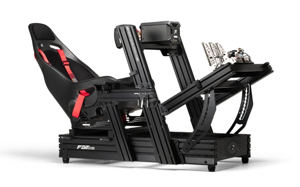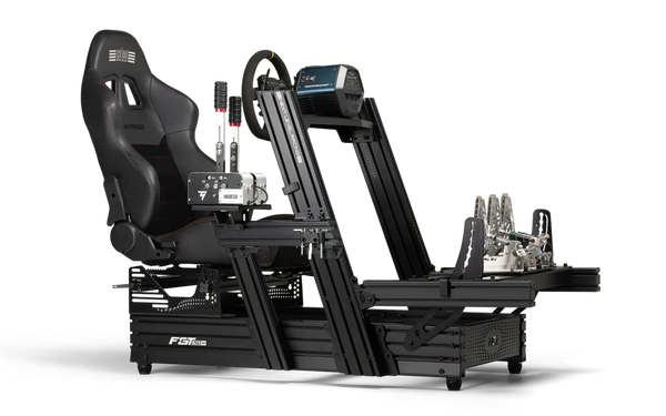 - Industry benchmark aluminum extrusion design with bespoke Next Level Racing end caps and T-slot nuts, Next Level Racing flex-free seat sliders, and custom Next Level Racing shoulder bolts